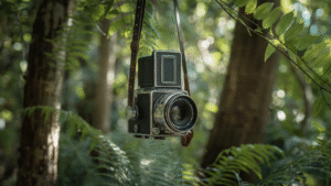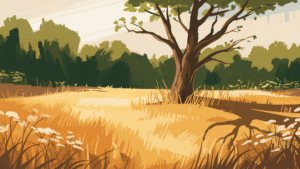 Not a yard, but a clearing — the kind I grew up exploring, where forts were steps up trunks and the air itself did the holding.